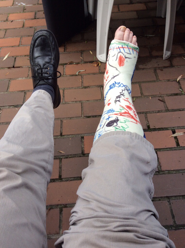 Aftellen. Pas zeven dagen voorbij. Nog vijf weken te gaan. Op één been.