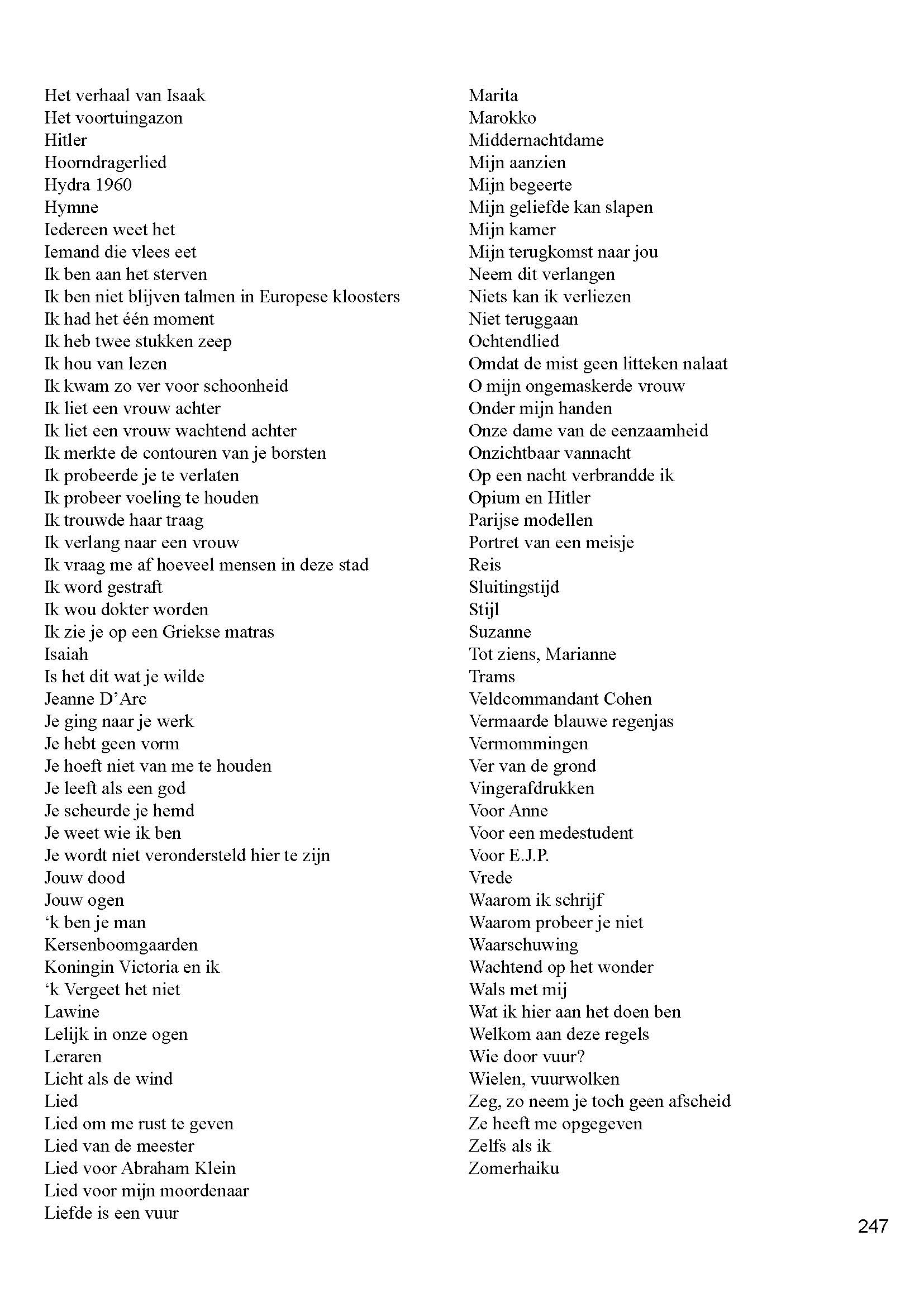 Overzicht 200 vertaalde songs en gedichten van Leonard Cohen