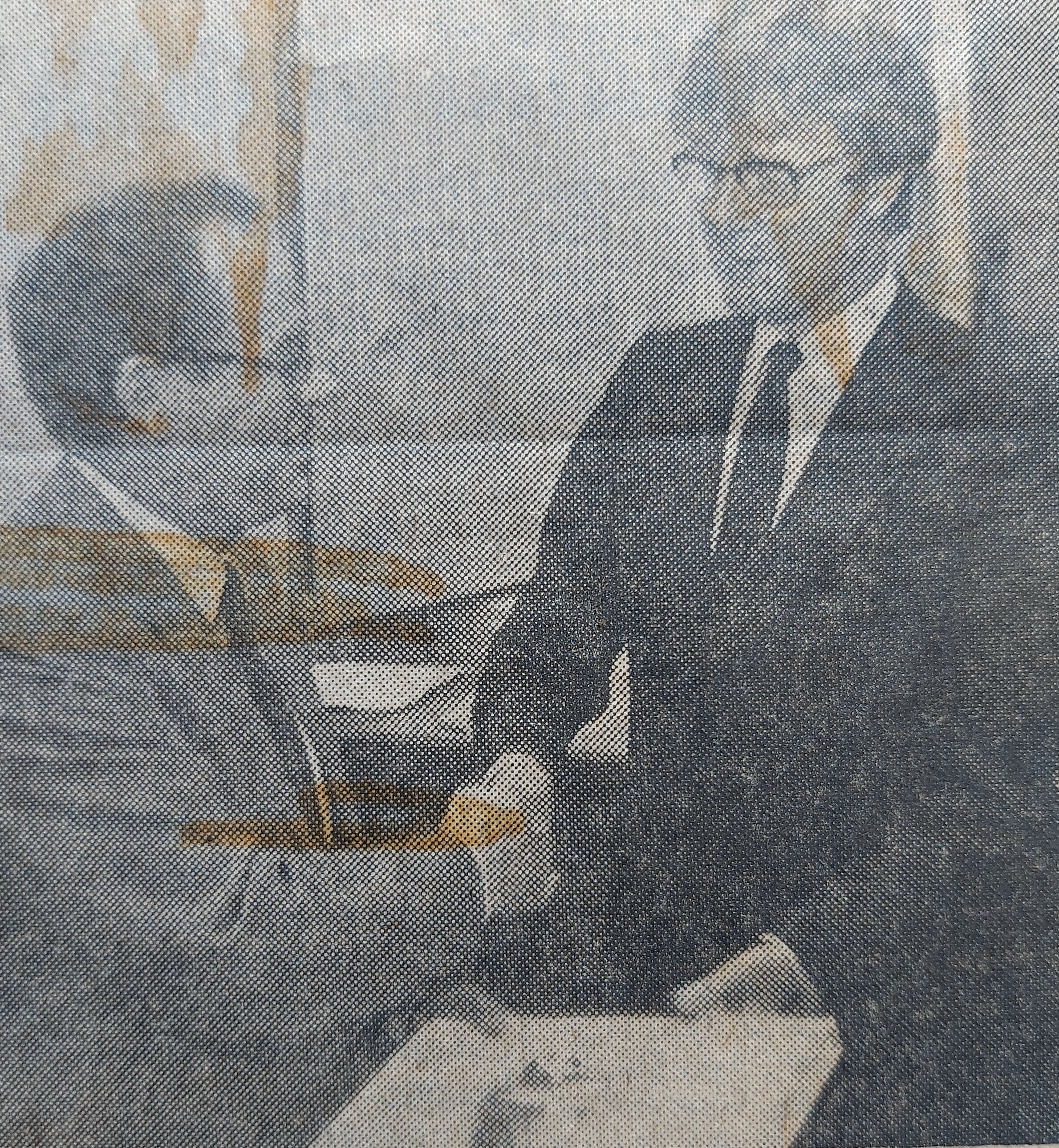 Dr. Lydia Schoonbaert schetste dan heel summier de ontwikkeling van ie tekenkunst van de jongste jaren: post-expressionisme (1945), abstracte kunst (jaren ’50), invloeden van pop art (60’ er jaren), hyperrealisme (70’ er jaren), modern symbolisme. „Op onze dagen komt een nieuwe en verhevigde gemoedsontlading zich in de kunst van ie jonge artiesten openbaren.” Directeur-uitgever Luc Demeester (Lannoo Tielt) had de eer het eerste exemplaar van ,Figuratief tekenen in Vlaanderen” aan de voorzitter van de VZW „De Gulden Sporen” te overhandigen. Het is trouwens het voorlaatste boek van het lustrumwerkjaar (75 jaar) dat van de persen rolt. Volgt nog de monografie „Luc Peire” van Jaak Fontien. Naast een reeks monografieën gewijd aan een bepaalde kunstenaar (Leon Spilliaert, Alben Saverys, Rik Slabbinck, Albert Servaes) brengt Lannoo geregeld overzichtsboekèn uit. In 1982 was dit „Kunstbeeld in Vlaanderen vandaag’’ (bekroond met de Gouden Legpenning), dit jaar „Figuratief Tekenen in Vlaanderen” en… men hoopt in de toekomst nog andere disciplines (keramiek, fotografie, grafiek) aan bod te laten komen.